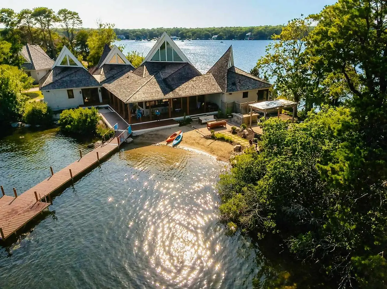 **New Photos Coming Soon**<br><br>Step into the serenity of Bali Lake Villa, a expansive six-bedroom waterfront estate on Wequaquet Lake in charming Centerville, MA—where a Cape escape meets a private, resort-like retreat.<br><br>Set on a rare, peninsula-style lot, the home is surrounded by water, offering panoramic lake views and a true sense of seclusion. From nearly every window and across two generous decks, you’ll take in shimmering water vistas and the calming sounds of the shoreline—creating a peaceful atmosphere unlike anywhere else on Cape Cod.<br><br>Inside, the striking Balinese-inspired design sets a tranquil tone throughout. Each of the six bedrooms—five on the main level and a private bedroom above the garage—ensuring comfort and privacy for every guest. A spacious kitchen and dining area set the stage for leisurely meals and lively gatherings, while sun-drenched living spaces open effortlessly to the outdoors.<br><br>Spend your days enjoying everything this private retreat has to offer. Swim or launch from your private dock, unwind on your own sandy lakefront beach, or enjoy a match on the private tennis court. As the day winds down, gather in the airy family room, grill at the outdoor kitchen, or dine al fresco overlooking the water.<br><br>With gated privacy, a one-of-a-kind water-wrapped setting, and thoughtful amenities like an outdoor shower, smart TVs, patio, two expansive decks, and a private dock, every detail is designed for a seamless and unforgettable stay.<br><br>When it's time to head out, you’re just 10 minutes from the iconic sands of Craigville Beach and Kalmus Beach. A short drive brings you to lively Main Street in Hyannis, known for boutique shopping and dining. Enjoy local favorites like Spanky’s Clam Shack and The Naked Oyster for seafood, or try something unique at Tumi Ceviche Bar, offering a creative Peruvian-Italian fusion. For a night out, head to Anejo Mexican Bistro for craft cocktails and a lively bar scene. If you’re in the mood for something more energetic, Main Street in Hyannis comes alive after dark with spots like Tap City Grille for drinks and live sports, or Tommy Doyle’s Irish Pub for live music and a classic pub atmosphere.<br><br>Back at the house, end your evenings by the fire pit with a cocktail in hand, sharing stories under the stars as the lake gently laps nearby.<br><br>Discover a one-of-a-kind Cape Cod retreat at Bali Lake Villa—secure your dates and start making memories.<br><br>Home Details:<br>-Dogs Welcomed (w/fee of $45/night per dog)<br>-Sleeps 15<br>Bedrooms<br>-Total 6<br>-1st Floor Bedroom: 1 Queen Bed<br>-1st Floor Bedroom: 1 Queen Bed<br>-1st Floor Bedroom: 1 Queen Bed<br>-1st Floor Bedroom: 1 Queen Bed<br>-1st Floor Bedroom: 1 Queen Bed, 1 Twin Bed<br>-2nd Floor Bedroom: 4 Twin Beds (above the garage)<br>Bathrooms<br>-Total 5.5<br>-1st Floor: Half Bathroom<br>-1st Floor: Full Bathroom, with Tub and Shower<br>-1st Floor: Full Bathroom, with Shower<br>-1st Floor: Full Bathroom, with Shower<br>-1st Floor: Full Bathroom, with Shower<br>-1st Floor: Full Bathroom, with Shower<br>Other Amenities<br>-Central A/C<br>-WiFi<br>-Smart TV<br>-Streaming Service<br>-Indoor Fireplace<br>-Washer/Dryer<br>-Propane Gas Grill<br>-Wood Firepit<br>-Outdoor Shower<br>-Water Sports (Kayaks and Paddle Boards)<br>-Please note outdoor amenities are available seasonally<br>-Please note there is/are an exterior camera(s) on the property that records front of house/driveway/entry door<br>-Sheets and Bath Towels Provided with Beds made Upon Arrival<br>-Cleaned with Hospital Grade Disinfectant<br>-Parking for 5 cars maximum<br>-CERT#<br>